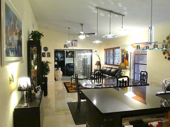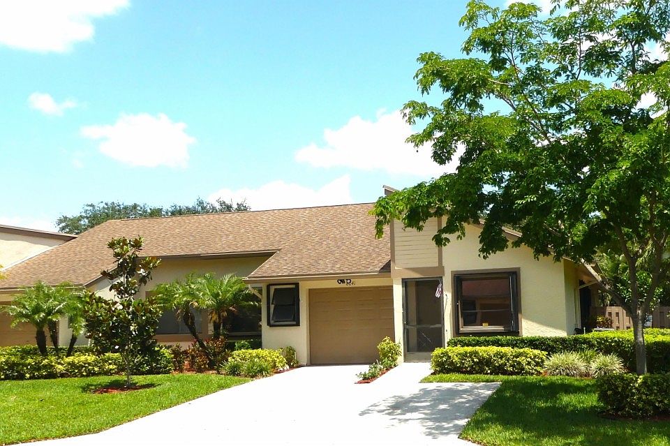 This pristine property is hedged and landscaped for privacy. A single story updated 2 bedroom 2 bathroom with vaulted ceilings features a modern spacious open plan living room, with a dining room leading into a chef's kitchen, complete with granite countertops and updated appliances. The laminate master bedroom is accompanied by spacious his and her closets and a on-suite bathroom. Newer water heater, A/C with blue light 2017 and faucets 2018, tinted windows, complete hurricane protection and a security system. Exclusive amenities feature an active clubhouse with activities and social clubs, library, fitness centre, pool, and tennis courts. Shopping and dining are minutes away at Boca Town Centre Mall.