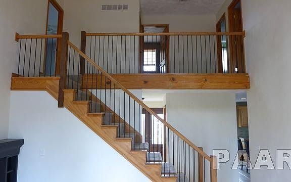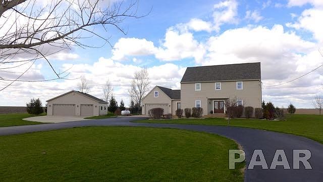 Country living at its finest! 3,300 finished sq ft flow throughout this 3 BR, 2.5 bath beauty situated on 3 acres! Vaulted 2 story great room with beamed ceiling, open staircase and fireplace. Lots of cabinet & counter space in eat-in kitchen. Main floor office. Convenient mudroom w/ lockers. Finished lower level features huge rec room, exercise room & den/office. Natural woodwork, skylights, built-in bookcases & tons of updates throughout! Enjoy the peaceful outdoors w/ fenced in backyard, deck & 36x36 building- garage space for up to 6 cars! Roof new in 2016.