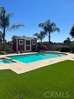 Welcome Home to this beautiful two story, 1,969 sq. ft. home on 6,969 sq. ft. size lot. This 4 bed, 2.5 bath house is nestled on a quiet culdesac in the Indian Hills Golf Community. You walk in the front door to a nice family area with beautiful new flooring and a 15 foot vaulted ceiling. Attached is the kitchen, which overlooks the well landscaped backyard, with a lovely in-ground pool, and built in shed. The backyard has a built in barbeque and outdoor kitchen area. There is a half- bath downstairs, along with another cozy living area. Upstairs is four bedrooms. The master bedroom has 2 closets, a balcony looking off the front of the house, and the attached master bath has been updated beautifully. The paint on the house has a transferrable lifetime warranty. Solar is leased, but can be transferred as well. Both the front and backyard are easily maintained with green turf. The backyard patio cover is also new to give shade for those hot days when you aren't swimming in the pool. The two car garage gives ample space for your cars, along with a large driveway. This beautiful home is waiting for you to enjoy!