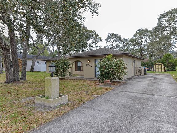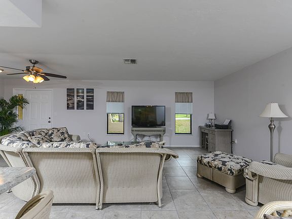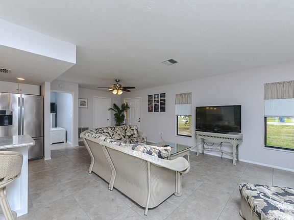 A beautiful open layout welcomes you into this home. Great tile floors flow through the entire home making cleaning up a breeze. Neutral tones in every room keep a relaxing feel to the home. The beautiful kitchen holds white cabinets, stainless steel appliances, updated lighting and recessed lighting above, the pass-through window is great for entertaining. The guest bedroom is very spacious and holds a guest bath just outside the hall with an updated vanity. A bonus family room area is large enough to use as an added bedroom is needed with slider access form the front of the home. The master bedroom is cozy, and the master bath holds an updated vanity and shower. Awesome space on the screened in lanai is provided with ceiling fans above to keep things cool or if it gets too hot, have a swim in the pool. A bonus patio area on the side of the home and the tree lined backyard for added privacy. The perfect spot to call your own! Come view today!