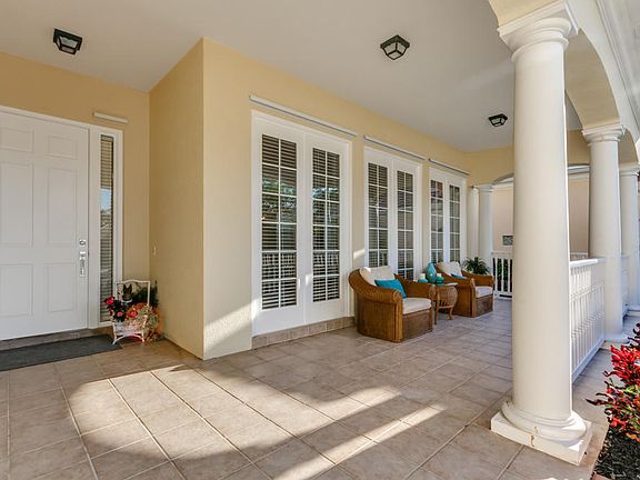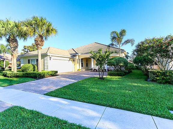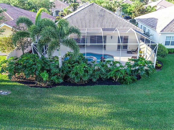 Embrace the Florida lifestyle in this beautiful 4 bedroom, 3 bath Carlyle model located in the popular Wellington neighborhood of Villagewalk. Relax on your charming front porch. End your day enjoying your custom salt water pool with raised spa and waterfall overlooking luscious landscaping and a lake beyond. A large screen protects the pool and patio allowing for backyard time at any time of day or night. Attractive wood floors welcome you and continue throughout the living and dining rooms. Stunning floor to ceiling windows brighten the formal living room. High ceilings and a large open family room and kitchen area provide ample living space as well as a great environment for entertaining.