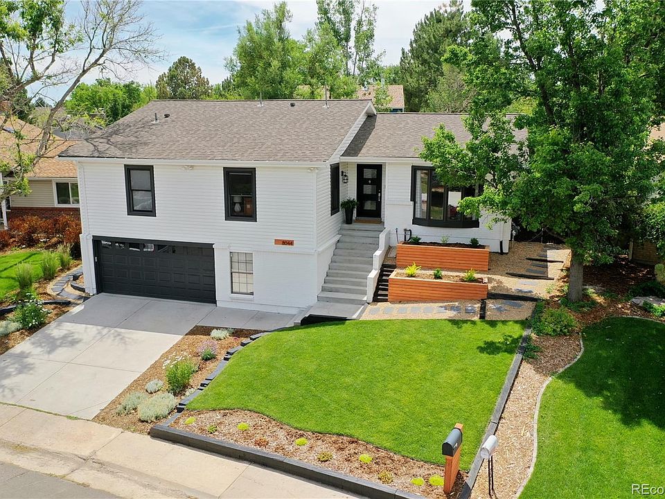 Welcome to 8044 East Amherst Ave. A stylish raised Ranch home completely remodeled from top to bottom. This move in ready ranch style property has too many upgrades to list. Spacious bedrooms with plenty of closet space, oversized bathrooms, rich hardwoods, porcelain tile, new hi- end appliances,new designer ceiling fans, designer lighting and hardware, new carpet and paint, High end Pella between the glass blinds in windows and sliders, 2.5 car oversized garage, custom cedar planter boxes and trim, new modern front door, new hi composition roof, fresh diamond white quartz counters, an oversized fully fenced private back yard with lush mature trees and pergola adorned with grape vines and ivy! A cozy space for relaxing or outdoor dining. The lot is desirable with great exposure and mature trees, plenty of room for kids, pets and entertaining. Lower level has newly laid floors, lighting, paint and laundry room, tons of storage in the unfinished area and a generous crawl space. Home has new hi -efficiency furnace and a/c. Nothing to do but place your furniture. Model perfect! Quick close available!