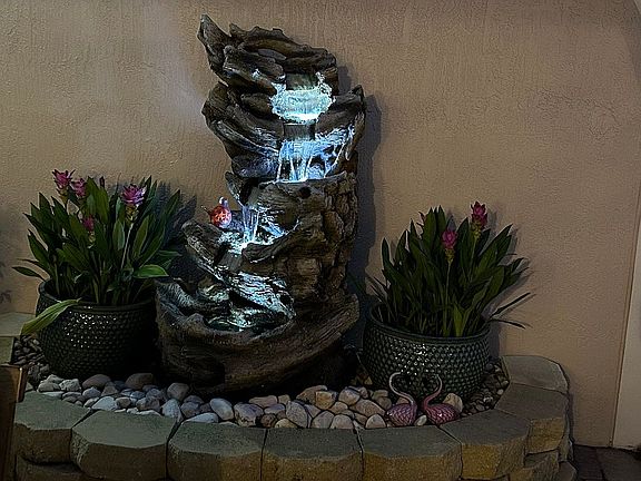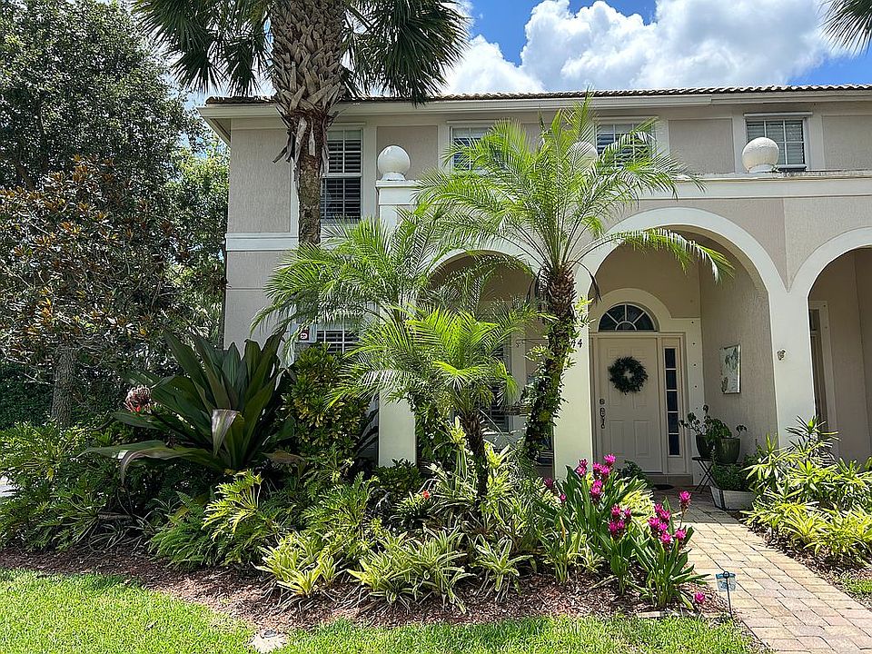 Tropical oasis in Palm BeachGardens. Gated Community at Montecito across street from infamous Honda Classic PGA tour. Home is like new and turnkey ready! This beautiful Corner lot - 3BR/2 ½ BH offers an open-concept living space with large living room, perfect for entertaining with water views. Enjoy your favorite drink while sitting under the cabana soaking up views of your lush tropical garden, with 2 waterfalls for your delight. Relax in spacious owners suite with walk-in closet, soaking jetted tub and stand alone shower. First floor plantation shutters on all windows including sliding glass doors leading out to lanai. 2nd floor - all impact windows. Updated kitchen with coastal living cabinets and glass tile backsplash. All kitchen appliances and washer have Transferable to new owner-2 year Warranty from Sears Master Protection Agreement. Dryer 6 months new. New A/C unit with UV system installed 2022. All bathroom lighting fixtures and faucets are new. New ceiling fans in all bedrooms. Newer upgraded 2nd floor luxurious carpet and pad. 2 Car Garage with new electric genie garage door opener and springs. Added floored attic pull down stairs for storage. Plus additional parking space adjacent to garage. Exterior freshly painted with Sherwin-Williams super paint.
