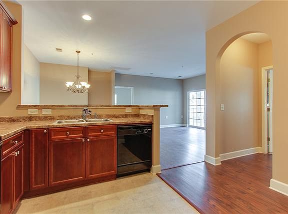 RARE FIND! Handicap-accessible ground floor condo; Wide door ways, walk-in shower, fresh paint, new carpet. 42" Cherry stained kitchen cabinets, large covered patio, end unit. Walk to retail stores & restaurants. Ramp in rear of bldg. Move in ready!