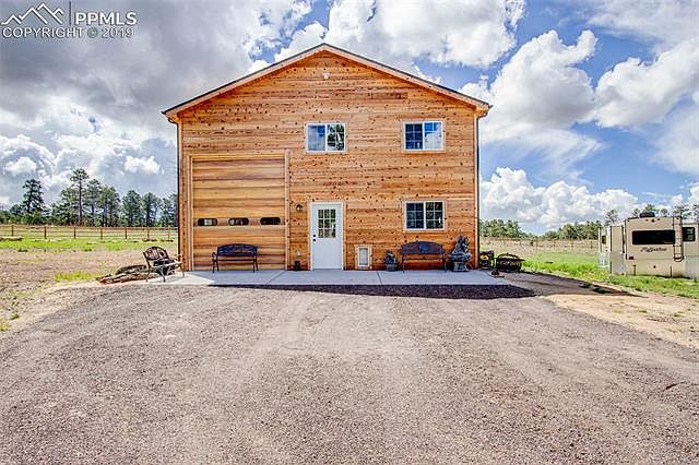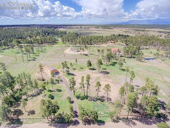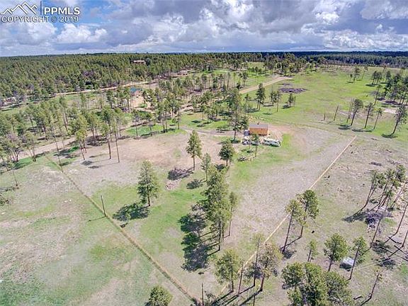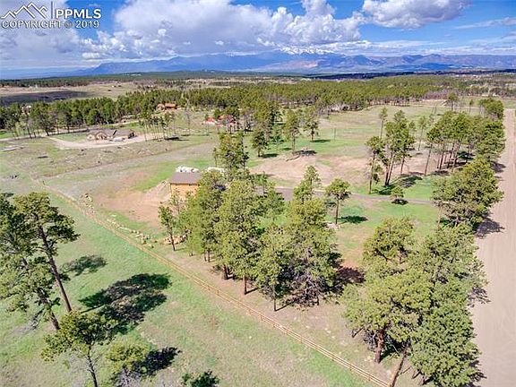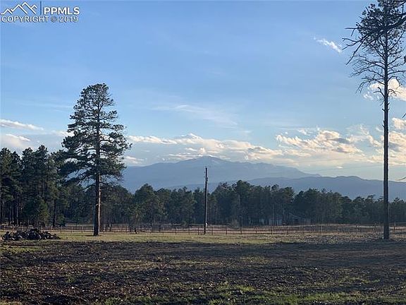 Incredible mountain and Pikes Peak views with elaborate pole barn and peaceful surroundings is ready for you to build your dream home. Utilities at building site, new well to Dawson aquifer that allows up to an acre of irrigation and septic for up to 6 bedrooms. New fully fenced yard with animal guard to keep animals in and safe with electric main gate. Awesome 30X40 wood structure functional pole barn with slab that is set up for storage with loft is insulated with water and electricity. Truly a Must See! House burned down in Black Forest fire, but was completely removed including all damaged trees so ready to build and enjoy. A beautiful property and a great place to call home.