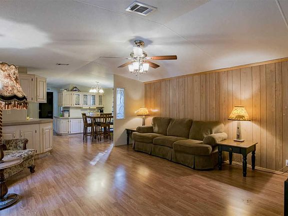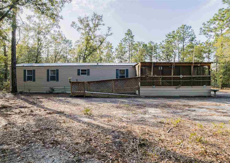 If you looking for land and acreage this may be for YOU! Mobile Home sits on 2.48 acres (approximately 190 frontage x 473 deep) and is completely fenced with an electric gate that opens with a remote. The property has mature trees and the home sits toward the back of the acreage. The mobile home (16x72) was purchased used in August of 2015 and placed on the property. The septic system was installed in 2015 as well. The power to the mobile home is underground from the road. The water is furnished by East Milton Water System. The home is total electric. There are storm windows over all of the windows in the home. The roof is metal. The seller just installed new wood laminate flooring throughout the home. As you enter the home you have a 24x10 screened room with a handicap ramp. The living room is large and spacious and open the the kitchen and breakfast nook. There are tons of cabinets in the kitchen. Electric smooth top stove with built in microwave, dishwasher and small pantry. The laundry room is adjacent to the kitchen with a back door that leads to the back of the home. The master has two closets, ceiling fan and the master bathroom has double vanity, water closet and shower. On the opposite end of the home you have another large bedroom with ceiling fan and walk in closet. There is a door from this bedroom to the full bathroom and a door from the hallway as well. This bathroom has a tub/shower combination. There is a PORTABLE workshop/storage (32x8) bought in 2015 that is not hard wired. This means the power to this building is wired for 100 AMP but currently has 50 AMP service. This was used for the sellers 5th wheel before he moved the mobile home to the lot. This building as a window unit that furnishes heat and air has tons of plugs, lights and the back has plenty of storage space. Home is less than 5 minutes to I-10, 15 minutes to Scenic. Great location. Zoned R1M.