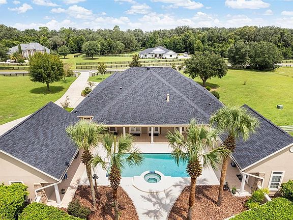 One or more photo(s) has been virtually staged. Luxury Pool Home with In-Law/Guest House, and Dual 3-Car Garages. This stunning 6-bedroom, 5-bathroom, 6 car garage home located in Pradera offers exceptional living inside and out. Pradera is an equestrian-friendly, gated community in Archer, Florida known for its spacious lots, luxury homes, and miles of trails for riding, walking, and biking. Residents enjoy a blend of seclusion and convenience, with easy access to I-75, (6miles) UF/Shands (10miles) the World Equestrian Center,(21 miles) Restaurants, and Shopping. The main residence features five bedrooms, four bathrooms, a dedicated office, a spacious upstairs bonus room and an attached three-car garage.The three way split plan is perfect for a large family. A detached in-law or guest house with a private entrance adds comfort and flexibility, while an additional three-car garage provides ample space for the car enthusiast. Outdoors, the beautifully fenced pool area offers a lovely pool and heated spa, an outdoor shower, and a summer kitchen. Recently updated with new pool area fans, and a new pool pump this space is perfect for year-round entertaining. Interior upgrades include wood and LVP flooring, crown molding, glazed cabinetry, and granite countertops. Modern conveniences abound with Starlink installed, a central vacuum system, security system, stand-alone safe, generator with transfer switch, and a home warranty. Recent improvements that ensure lasting value: Roof (2024) Titan XT 30-year roof rated for 160 mph winds, three new HVAC units, new dishwasher, refrigerator, central vacuum and fresh exterior paint. Roof, Home Warranty, and Starlink are all transferable to new homeowner. Come see this rare combination of luxury, functionality, and peace of mind—all in one exceptional property.