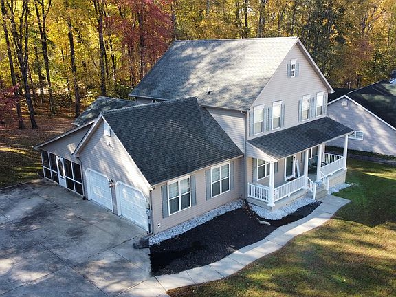 Settle Woods is a beautiful community of custom crafted homes located just off of Bensville Road w/ 5-7 Minute ride to Manokeek & 210 for commuting. This home is situated on a beautiful lot (.41 Acres) backing to mature hardwood trees & a culdsac street. The front porch is freshly painted & so inviting, the entry foyer leads to an open front living room that has a beautiful fireplace, you’ll love the “U” shaped stairs to the 2nd level w/ the custom round windows for natural lighting. The laundry is on the 2nd level which makes it convenient for the 3 spacious bedrooms to include owners suite w/ large custom walk in closet, cathedral ceiling & balcony to overlook the beautiful back yard. Owners bath complete w/ a 6 ft soaking tub & walk in shower. The main level has a dining room w/ custom cabinets (could be used for a home office), walk thru kitchen w/ breakfast bar opening (arched opening w/ columns) that leads to a spacious family room with a beautiful custom slate TV/Fireplace wall. (set up for propane or electric FP) There is a cozy breakfast nook/table area leading this gorgeous sunroom w/ cathedral stained wood ceilings & custom trimmed out windows. Check out the built in bar w/ granite top, the tiles sparkle! There are glass doors (8 ft tall) leading to the back yard, perfect for adding a custom deck to enjoy this beautiful outdoor space. The lower level features a family room, game area w/ the deluxe slate pool table that conveys, storage, full bath, bedroom/den, storage area & covered walk up stairs to the outside. Some highlights are: mud room w/ sink & cabinetry walking in from garage, spacious corner pantry, 9ft wide garage doors. Solid Core 8 ft doors on main level , 1 fireplaces, built in nook for beverage/wine cooler in lower level, driveway is large enough to hold 8+ vehicles. You can be at the capitol beltway/National Harbor in 19 minutes or just 10 minutes into Waldorf for shopping & dining. **Original owner who had home custom built.**24 hours notice to show please. Buyer unable to perform w/ financing . BRAND NEW ROOF