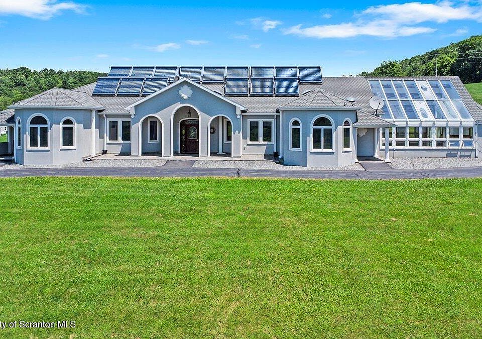 Welcome to your custom-built oasis! This stunning 4 bedroom, 4 bath ranch sits on 10 acres and boasts breathtaking views from every room. Architectural arches, multiple entries on main and lower levels, and a wrap-around driveway set the tone, while an elevator seamlessly connects the entry level to the main living spaces.Step inside to discover a home drenched in natural light, where every room offers a unique perspective of the beautiful outdoors. Two specially designed rooms even feature their own private patios. The resort-style indoor pool is heated for year-round enjoyment, and the heated garage adds to the convenience.Retreat to the master suite, a sanctuary of luxury complete with a walk-in shower, an oversized soaking tub, and a large walk-in closet. Modern comforts abound, including a whole-house smart radiant heating system powered by 3 geothermal heat pumps and solar panels for optimal efficiency. A hook-up for a whole-house generator and an oversized propane tank ensure you're always prepared.Outside, unwind by your private pond or simply take in the serene countryside. With so many custom features, this property must be seen in person to truly do it justice. Discover the perfect blend of innovative design, modern amenities, and natural beauty in your new dream home.