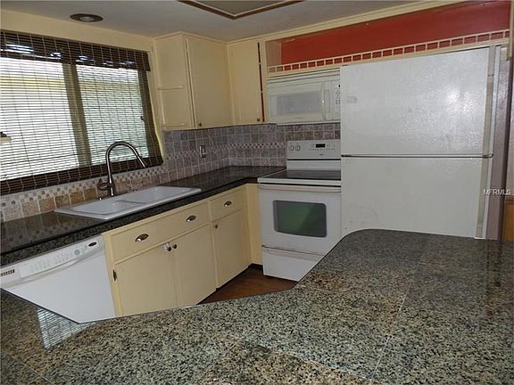 Move In Ready. Beautiful home with tile flooring and updated kitchen. Two bedrooms with possible 3rd bedroom conversion. Large tiled lanai overlooking fenced back yard. Gazebo patio plus wood deck and outside storage. One car garage with double wide parking pad. Great curb appeal with tropical landscaping. This Is Paradise!