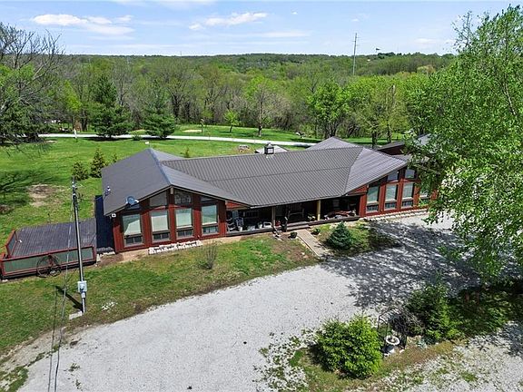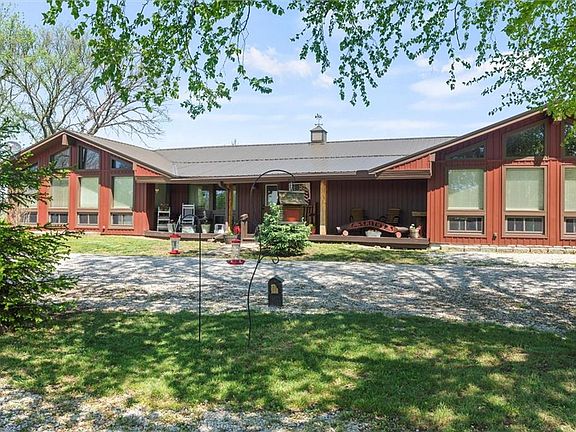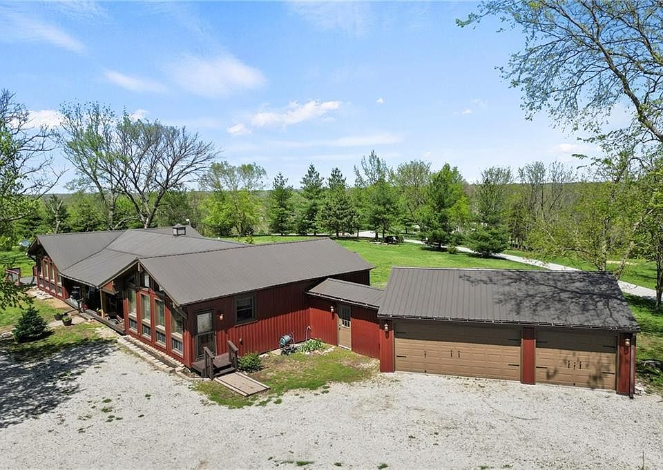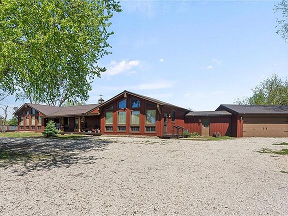 Country living at it's finest... 3+ ac. just west of Richmond with sensational sunsets! This 2,800 sq. ft. 4 BR, 3 BA rustic ranch w/floor to ceiling windows, and 3 car attached garage has many major updates for modern comfort including decking, HVAC, kitchen appliances, roof/gutters, custom windows, and siding. Experience mindfullness in every corner of this home with features like vaulted ceilings in kitchen, master BR, en-suite, BA w/tongue and groove cedar finish, and new carpeting. The open floor concept LR, DR,and gourmet kitchen has custom oak cabinets w/pull out shelving in base cabinets. The large kitchen island includes seating, 2nd sink, and is a fgreat gathering point while entertaining and creating memories. The 3 large pantries for appliances or storage are a nice addition for family life in the country. The luxurious master suite with french doors leading to the deck for relaxation is spacious, and the adjoining bath features a jetted tub, walk-in shower, and double vanity. The en-suite is currently used as a craft room, but the possibilities are endless. There's a convenient office nook and over 1,100 sq. ft. of decking with connecting walkways, storage area, and covered front porch. For even more space see the 2 amish built custom cabins (currently used as craft shops) that are approx. 500 sq ft each, are well insulated, have finished interiors and electric service, that could even serve as extra family gathering spaces, man cave, etc. Approx. (400) currently growing christmas trees reside here, as well as many many blackberry bushes. This property is the total package in a great location with blacktop road, super views, a quick access to 210 Highway.