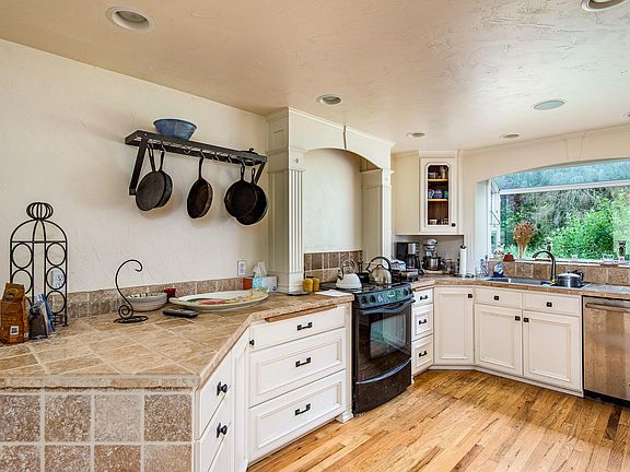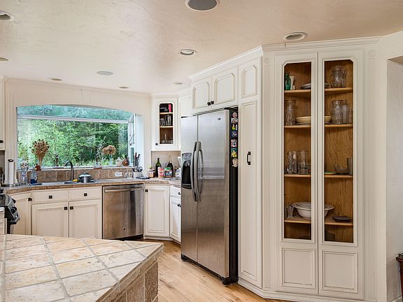 Very secluded beautiful land and house along Lost Creek. BLM borders one side. Great home with plenty of natural light, large Master w jetted tub and shower, gorgeous sun room overlooking land, spacious kitchen with Stainless Steel appliances and garden window, sound system throughout. Fishing/swimming on Lost Creek, 30'x40' shop, detached office/shop, chicken coop, garden beds, merchant timber potential. Mature fruit trees, strong and clean well, plenty of gardening/growing space. Must see to appreciate.