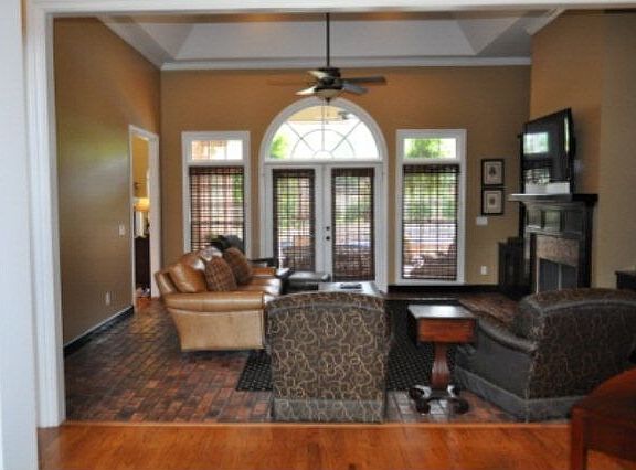 Love to entertain? This is the perfect home for you! 5 BR 4 & a half baths 4285 sq ft brick beauty boasts open kitchen w/keeping room, breakfast area overlooking patio, great room w/brick pavers & FP w/gas logs, built-ins flanking FP, trey ceilings w/recessed lighting, sep dining rm, soaring 12 & 14 foot ceilings, plenty of natural light, french doors lead to the lovely salt-water pool & hot tub surrounded by flagstone, situated on the 10th fairway! 3-car garage has built-in cabinets. A beauty!
