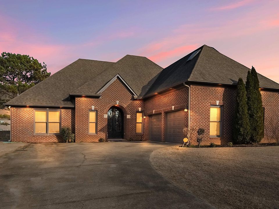 BACK ON MARKET AT NO FAULT TO SELLER! A stunning custom-built 4-sided brick home nestled on a spacious corner lot spanning over half an acre. The home offers 3 bedrooms and 2.5 baths with a recreational space on the second level. As you walk through the custom finished metal double door, you are greeted by high ceilings spanning 15 feet in the foyer with a stunning chandelier. As you walk through the arched passage into the large great room, you will find a vent-free gas log fireplace. Flowing seamlessly from the living room, you walk into the large kitchen area with it's own eat-in area and kitchen island with tons of maple hardwood cabinetry storage. With the master on the main level, it provides seclusion and accessibility into the bedroom with a tray ceiling as well as his and hers closets with his and hers vanities. The master bathroom features a jetted tub with a walk in shower. Upstairs features two more bedrooms with amble bonus living space with potential for a fourth bedroom.