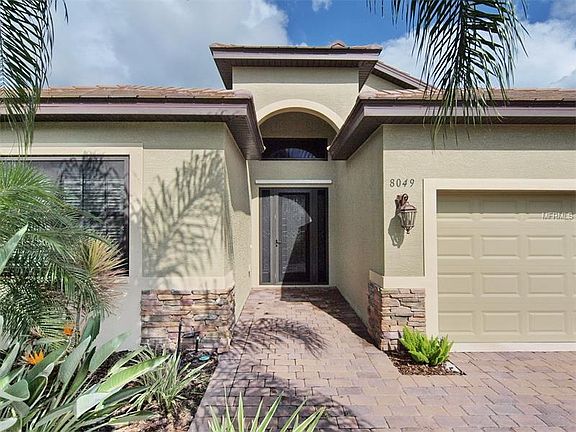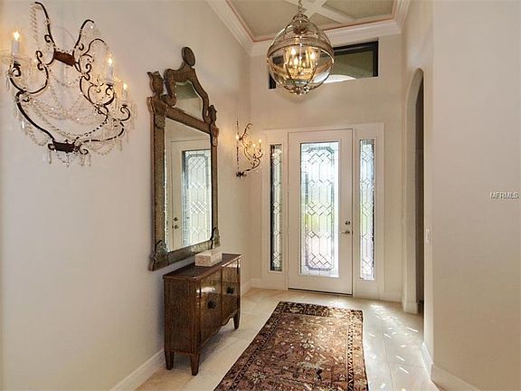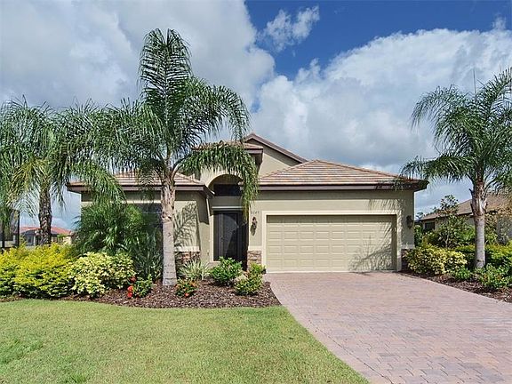 Location! Location!! This better than new stunning Medallion home is located in an exclusive, gated community of 82 homes with brick paved sidewalks throughout the neighborhood and no CDD fees. This 2 bedroom, 2 bath, with den/office, is barely lived in. With over $100K in upgrades, it's located on the best lot in Riva Trace. It has a private, full lake view backed by a preserve. Very open floor plan with 42" upgraded cabinets and trim, upgraded tile flooring throughout home with upgraded carpet in bedrooms, 13'' ceiling and rope lights in foyer with 15'' tray ceiling, 11'' ceilings throughout with 13'' tray ceiling with rope lights in great room, crown molding throughout house, upgraded trim package, 12" pocket sliding glass door in great room, large lanai. Complete privacy with extensive landscaping, and all windows and doors protected by Sentry Protection Crime safe technology which is a stainless steel security mesh and frame system designed for security protection, hurricane protection, energy reduction, and insect control. Riva Trace is nestled on the Braden River just minutes from the University Town Center, shopping & restaurants. This home is move-in ready and priced to sell. Furnishings may be purchased separately.