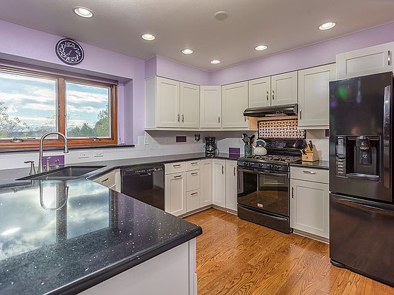 Attractive updated Four Lakes two-story on a third-acre lot with beautiful mountain views! A truly remarkable find with an ideal layout featuring five bedrooms, five bathrooms, office, loft and a finished walk-out basement. Prime location walking distance to Abbott Park, minutes to Streets at SouthGlenn and excellent Littleton schools. Fresh paint, new carpet and hardwood floors grace much of the home. Formal dining and living rooms flank the welcoming entry. Beautifully remodeled kitchen features quartz countertops, tile backsplash, new cabinets, a breakfast bar and spacious casual dining area that overlooks the large back deck and yard. Elegant vaulted family room with soaring vaulted ceilings, beautiful mountain views, sunny skylights and a stylish floor-to-ceiling brick fireplace. Versatile main floor office with attached, private full bath could easily be a sixth bedroom. Expansive vaulted master retreat with skylights, His & Her walk-in closets, and a stunning remodeled five-piece bath. Three additional bedrooms maintain the use of a fully upgraded hall bathroom as well as a large loft. The walk-out basement is arranged with an oversized rec room for seamless entertaining, a fifth bedroom, hall bath and abundant storage space. The west-facing backyard offers a deck with picturesque mountain views, new lower-level patio, garden areas and mature trees for privacy and shade. Take advantage of the oversized three-car garage with additional storage areas. Enjoy a strong sense of community in the established Four Lakes neighborhood with annual events, pool and tennis courts.