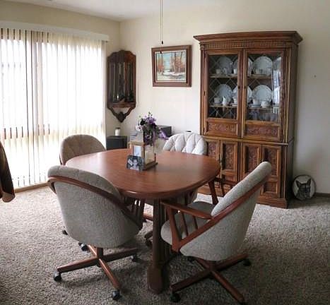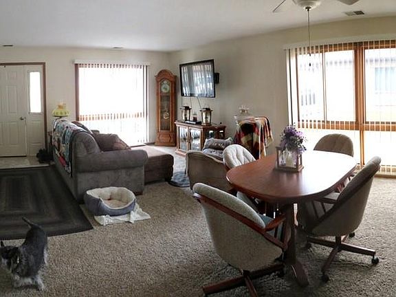 NEW-NEW-NEW! Move right in! Well maintained Cottage Acres unit (formerly Coventry Village). A 55+ over community. Open floor plan. New flooring throughout. Spacious, carpeted living room. Kitchen has skylight, new flooring, and slate appliances (2019). Large master bedroom with big double closet. 2nd bedroom has sliders to the private patio and great view of the common area gazebo and walking path. Vertical blinds (2019). Stackable washer and dryer with extra shelving. Front storm door (2019). Patio door (2016) AC (2011) roof (2013). Shelving in garage. $218/month HOA covers lawn care, snow removal, and some outside maintenance.