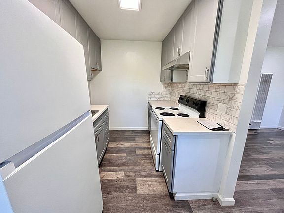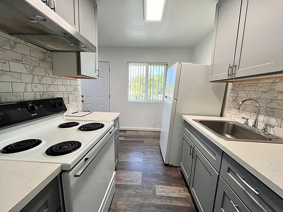 Newer counters in the kitchen that opens to the spacious living room. 1 covered parking space per unit, with a storage unit included in the rent!