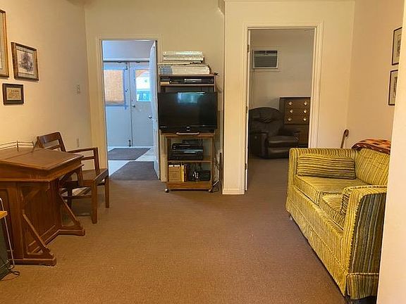 HOME WITH HUGE ATTACHED WORKSHOP. This unique property is ideal for individual wanting large adjoining workshop fo woodworking or mechanics and includes sink and pegboard walls. 1 bedroom home has 640 sq.ft. plus 560 sq.ft. of workshop formerly used for woodworking and art studio. Home includes private bedroom ad bath, den, and kitchen, 10 ft ceiling with garden wall creates open feel. Rear carport awning, corner lot (includes 2 lots partially fenced). Additional large storage building with concrete floor and overhead door also included. Great buy at $47,500!