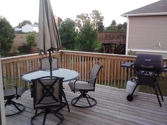 This home is built in 2007. It is located on the outer edge of town that has a country view and also is close to the city park. It has a 2 stall garage that is fully finished. The main level has 2 bedrooms, a bathroom, and an open livingroom, kitchen, and dining room that walks out to a deck that you can enjoy over seeing the beautiful country. The lower level has 2 bedrooms, a bathroom, a large family room, utility room, and plenty of storage. In the family room there is a gorgeous oak and marble fireplace. The lower level is completely finished except the painting and flooring. If you so wish to, with earnest money, we will install and paint it so you can have it the way you want it. All you need to do is choose the color and type and we will do the rest. This home has a unique layout and is perfect for anyone. Its a must see.