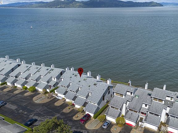 Magnificent Columbia River Frontage with panoramic views from almost every room in this 2 bedroom, 2.5 bathroom Point Triumph Condo. First floor gives you an open-floor plan for the living room, dining room and kitchen with wonderful natural lighting. Gorgeous hardwood floors, gas fireplace, half bath, Corian counters and sliding glass doors onto terraced deck with spectacular river views. Upstairs you'll find the primary bedrooms with vaulted ceilings & attached full bath. Secondary bedroom-full bath and a bonus area which features built-ins, ceiling fan & skylights, plus a river viewing nook.