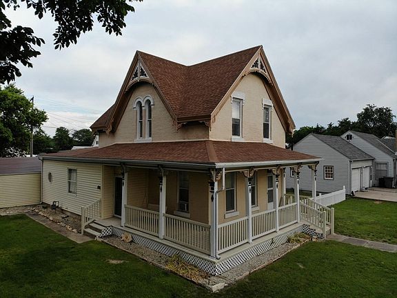 Waconda Lake area home. Vintage brick exterior with arched window and door details, Wrap-around covered porch.