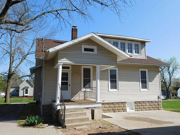 This property is a unique one with almost an acre on Main St. approximately 180 feet of frontage and is zoned commercial. Not to mention this home is perfect for someone that loves older homes with character. Original beautiful wood work inside, inlaid wood floors, a butlers pantry that has a passthrough to the built in china cabinet. Main level has large living room 30 x 13'8, dining room, two bedrooms, kitchen, bath and butlers pantry. Upstairs are 3 generous bedrooms, and a full unfinished basement. Det 2 car garage. New roof, replacement windows, and updated electric.