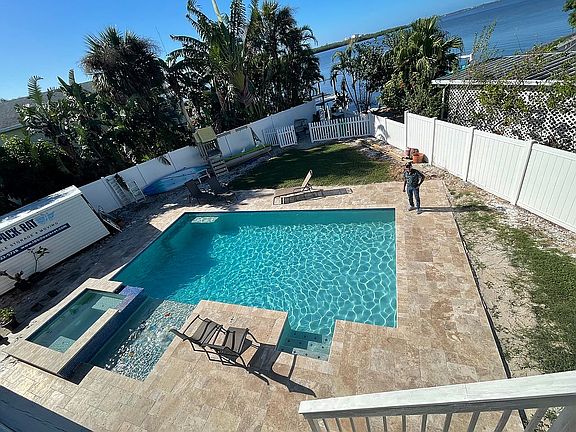 Spectacular views of Terra Ceia Bay from 3rd story of this keywest style home. Decks on 2nd and 3rd level span the entire length of the home, a great place to relax and view the sunset. Home is elevated so flood insurance isn't an issue, current owner pays about $425/yr. Home also has motorized hurricane shutters on 3rd level, panels for the doors on 2nd level and metal roof. This home sits on a large corner lot that is fenced. Plenty of room in back for a pool and/or storage for your boat/RV. The first floor of this home is totally enclosed and has room for up to 5+ cars, endless storage space and a work bench. Besides the two 2 car garage doors, on the one side is a 3 car garage door to really open up the space. You enter the 2nd floor into the 2 story great room, open to the updated kitchen (2006) which has all new cabinets, Silestone counters, stainless appliances, gas range, and a huge island (62x99) with lots of storage. There is also a second sitting area off of the great room with a fireplace this could also be used as a formal dining area. Along the back wall are 6 sets of French doors that provide views of the bay from every room. Wood floors throughout the home as well as beadboard ceilings. Guest room with bath, laundry and office (or 4th bedroom) are also on the 2nd floor. The third floor has master bedroom and bath and access to 3rd floor deck with great view of bay, another guest room with bath and open loft with access to deck. One year home warranty included. Home close to I275/75.