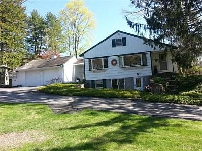 Think vacation when you arrive at this lovely home. Looking outside from any of the large windows shows picturesque views on this lovely and tranquil manicured grounds. Updated kitchen with granite and stainless steel appliances. Hardwood floors. Relax by the two fireplaces, and gaze upon this lovely setting. Great commute, with all the relaxation that this home holds, just 12 minutes to the train and 38 minute ride to NYC.