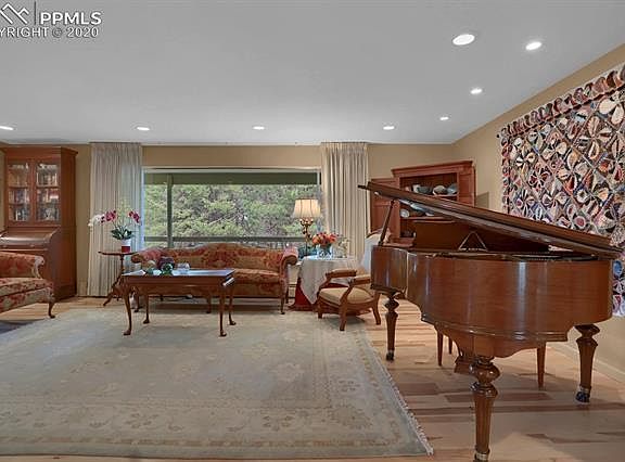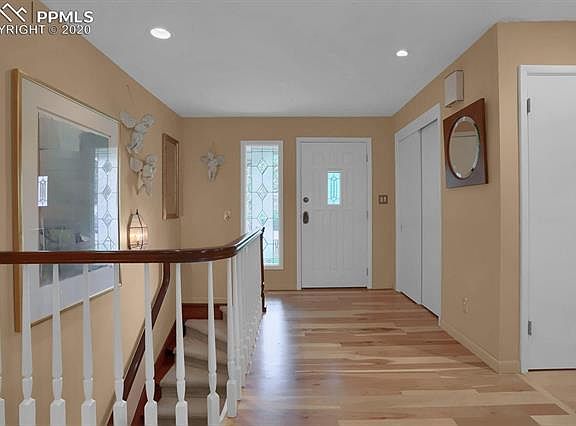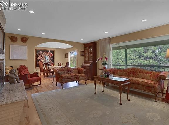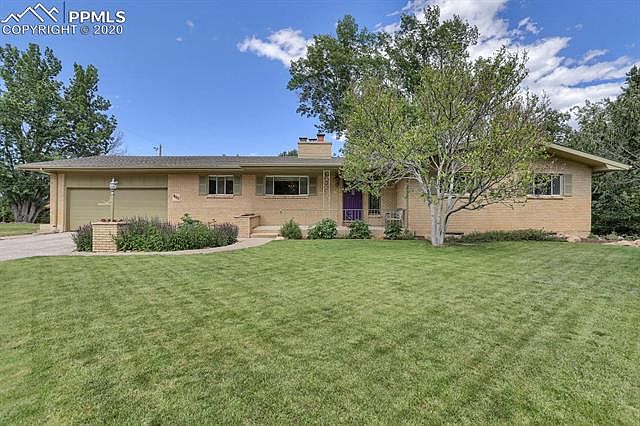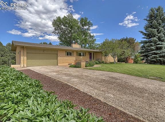 Lovely ranch style home in the area of Skyway Park Estates in Colorado Springs with mountain views. This 4 bedroom, 4 bath home features 3,676 sq ft with beautiful landscaping that includes mature trees, raised perennial flower beds, a huge fenced in backyard with plenty of entertaining space making for your own English garden. Hardwood flooring throughout most of the home. The foyer opens into the living room that features a floor-to-ceiling brick fireplace with hearth and large picture window to bring the outside in. A curved archway leads into the formal dining room and walks out to covered deck. The gourmet kitchen features cherry cabinets, Corian counters, brand new cooktop, double wall ovens, plus a breakfast nook. The master bedroom has hardwood flooring with an adjoining bath. Main level has an additional 2 bedrooms, a bath and a powder room. The lower level features two family rooms with one that features a fireplace, built-in bookcases and walk-out to the tranquil yard. Completing the lower level is an additional bedroom, laundry room and a large storage area. Extras include a swamp cooler, oversized two-car garage with an office/storage room, sprinkler system, radon system, water softener, window coverings and Cheyenne Mountain School District 12.