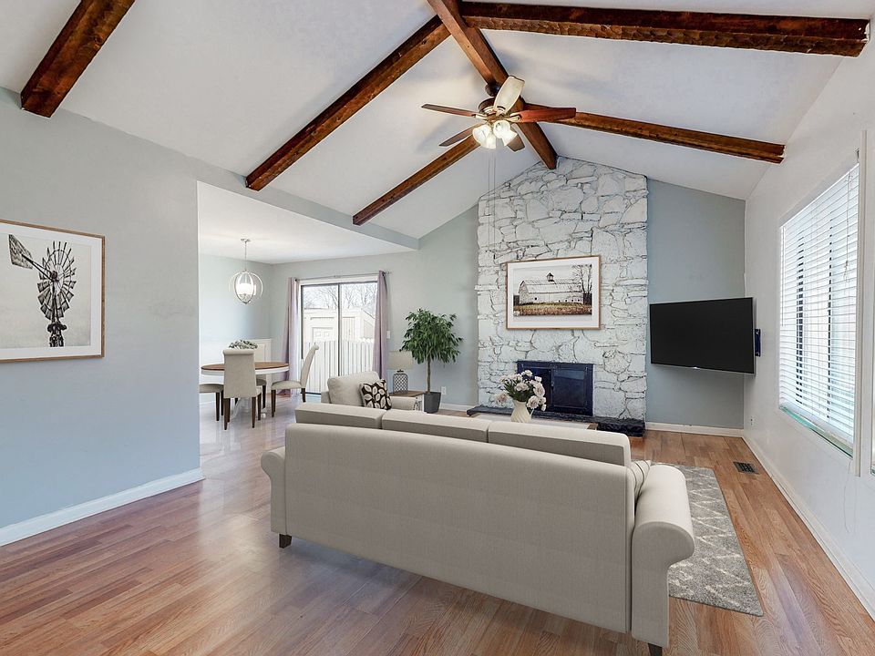 Charming one level condo in the heart of Bellevue. Exposed beams, vaulted ceiling, and fireplace in living area. Walk to Publix and dozens of restaurants. Updated tile in entry, kitchen, and guest bath. Appliance highlights include stainless steel gas oven, refrigerator, washer, and dryer. Private fenced yard with storage. Super short walk to the pool.