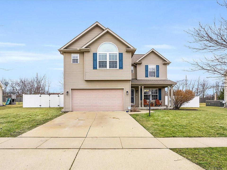 This fantastic 2 story, 4BD/2.5BA home with a partially basement in Prairie Fields subdivision is a must see! Perfect for entertaining, the Main floor offers a great room with lovely wood floors and a cozy gas log fireplace, an eat in kitchen with an island and pantry for convenient storage and meal preparation, plus a separate dining room and half bath. Upstairs, you'll find the spacious primary bedroom, featuring an attached bath, complete with a jetted tub, separate shower, dual sinks and two walk in closets, plus 3 additional bedrooms and an additional full bathroom with dual sinks. You'll love the convenient 2nd floor laundry room, making all your laundry tasks a breeze. The partially finished basement provides a large recreation area and added storage space and is plumbed for an additional bathroom. Outside, the large fenced backyard with patio and garden shed gives plenty of space for gardening, playtime on the play set, or simply soaking up the sunshine. Schedule a showing today and experience the comfort and charm it has to offer. Pre-inspection has been completed for your convenience.