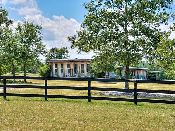 As seen in Aiken Homes and Lifestyles Magazine: Blue Skies -- A superb, modern farmhouse on 32 acres is sited to enjoy privacy, nature, open fields, sweeping vistas & amazing sunset views! A gated entrance welcomes you to a private drive with 3-board fenced pasture along the right side. Arriving at the 2014-custom built home, you will be captivated by the mid-century modern inspired architecture and the open fields & skies beyond. The home features soaring ceilings, open living space and windows that embrace the views and setting. Custom features include unique wood beam accents, subtly integrated luxury finishes & a wall of windows which fold open to the deck & saltwater gunite pool for seamless indoor/outdoor living. The well-designed kitchen in sea glass hues features Bosch appliances including a steam oven. Owners suite shines with a stunning bath & walk-in closet. Step outside for a walk in the 8-acre fenced back 'park', stroll down to the creek or enjoy an outdoor shower or swim! Magical & enchanting - a perfect retreat!