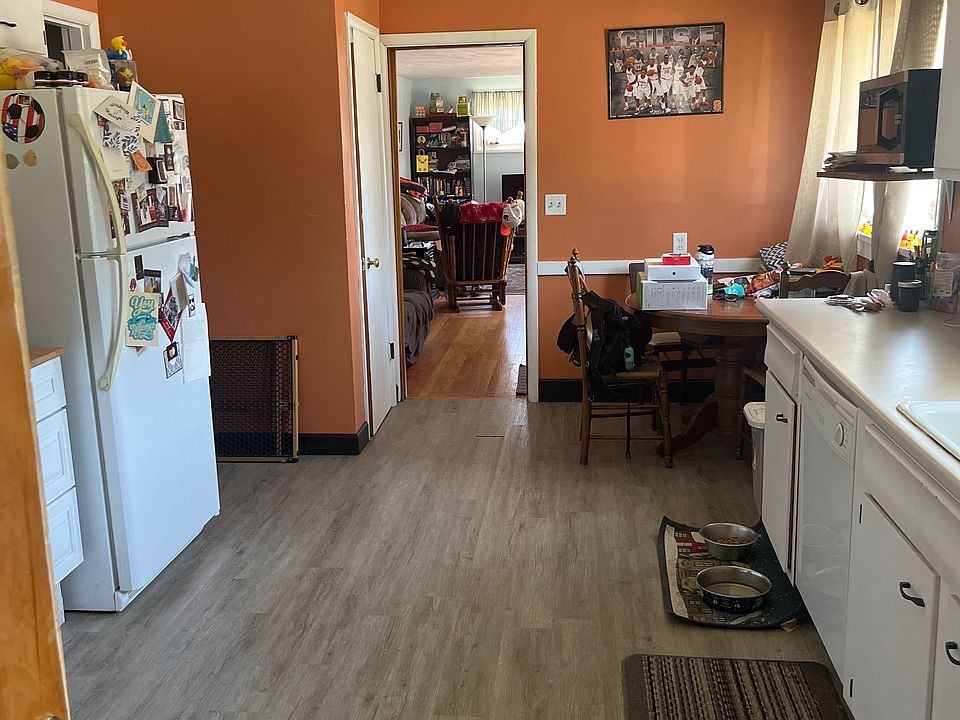 Ranch with 2 large bedrooms, 1 medium bedroom, 2 bathrooms, washer/dryer, kitchen with a breakfast nook, living room with a bay window facing the walking trail across the street, one stall garage with a driveway that can hold 2 cars, and a medium sized side yard and backyard. Barry park is just a walk across the street away. It's 1.5 miles away from the dome. Approximately a 30 minute walk into campus or a 10 minute bike ride. The local public schools are Ed Smith pre-k to 8th(10 minute walk) and Nottingham HS (28 min walk). Utilities: Gas/Electricity with 3 housemates averages between $150 to $250 per month depending on the season. Water comes to around $65 every 3 months. Pets: $50 a month for each dog/cat. Parking: there is free parking for 1 car in the garage and 2 cars in the driveway. There is also free public parking directly across the street. Smoking: No smoking in the house. You're welcome to smoke in the garage or the small room off the garage. Maintenance: Renters are expected to shovel the driveway and sidewalk in front of the house during the winter. Shovels will be provided. An electric push mower will be in the shed so that you can mow the lawn when appropriate. Furnishings: The house is currently furnished with couches, beds, tables, chairs, desks, end tables, bookshelves, and dressers that can be left or taken out depending on the renters preference. $50 a month extra for each bedroom's furniture. Common room furniture is included with rent.