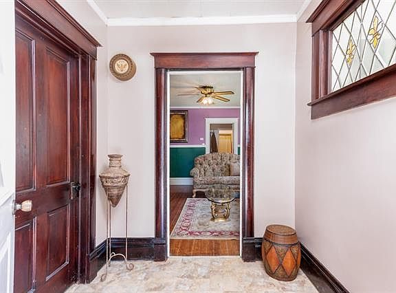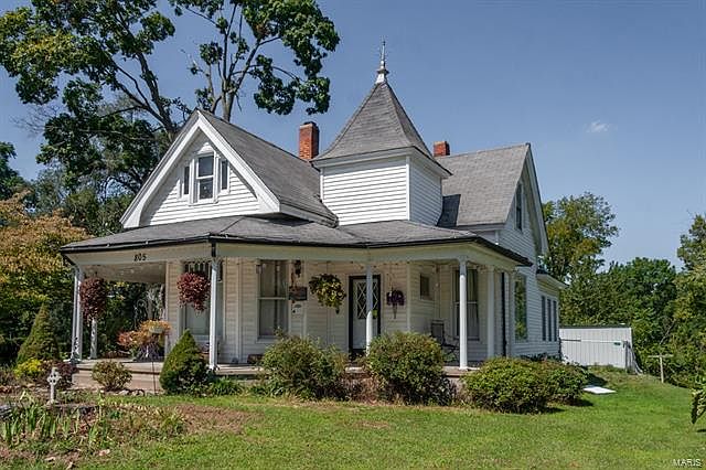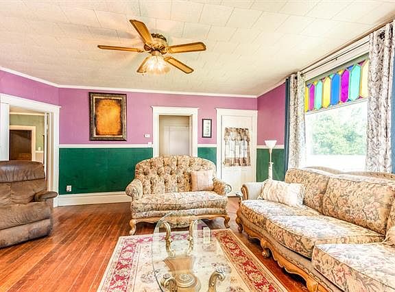 Experience the magic in this one of a kind 2080 sq ft home on nearly 1/2 an acre! wrap around front porch will greet you into the incredible entry foyer-hardwood floors in living room-main floor master bdrm (has no closet)-all new flooring through out the home except for living room-kitchen features newer appliances, pantry and center island will stay-formal dining room -stained glass windows-3 more huge bdrms upstairs-main floor has forced electric heat & air and upstairs has 2 window A/C units and 3 wall heaters-lovely shaded lot with additional land possibly available plus has a nice 30x12 foot shop in back yard! call today, located near school and in quaint area of town-1 year Home warranty