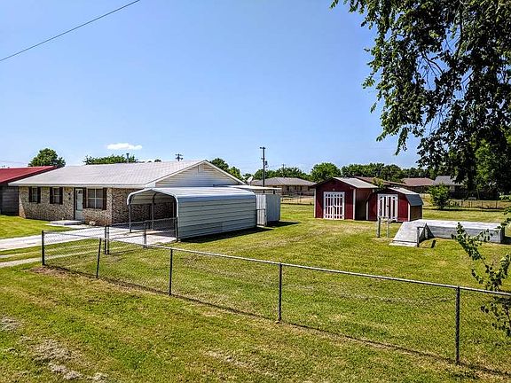 Extremely well maintained brick ranch style home on over sized fenced yard in Comanche. 3 bedroom 1 & 1/2 bath with central heat/air, and inside washer and dryer room. Large storm shelter, 2 extra storage buildings and utility gate access to back yard. This home will qualify for USDA/VA or FHA financing! Call/text Jade with Kay's Real Estate for more information 580-470-5304
