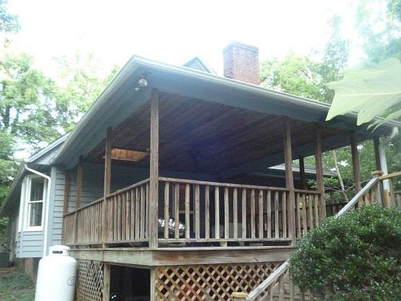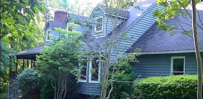Country living at its best! Private wooded 2 acre lot in a neighborhood setting. Wrap-around front porch leading to huge covered back deck. Beautiful wood siding recently treated and painted. Replacement windows recently installed. Downstairs (hardwood flooring) in living room, dining room (with bay window), and master bedroom. Downstairs also includes kitchen and breakfast nook/office area. Master bedroom includes bay-window, master bathroom and walk-in closet. Upstairs bedrooms include two massive closets, and three other hallway closets. Access to large attic from upstairs and from garage. More storage space than you can imagine! 02/27/15