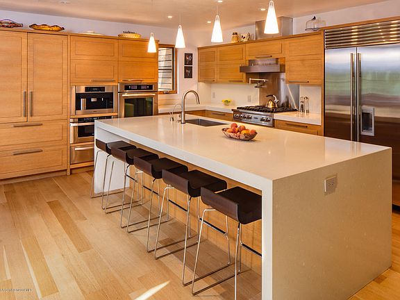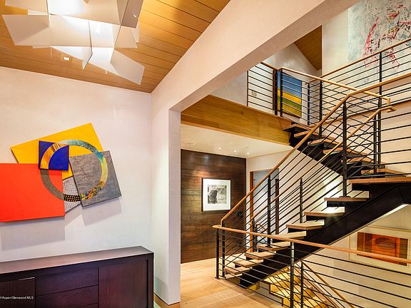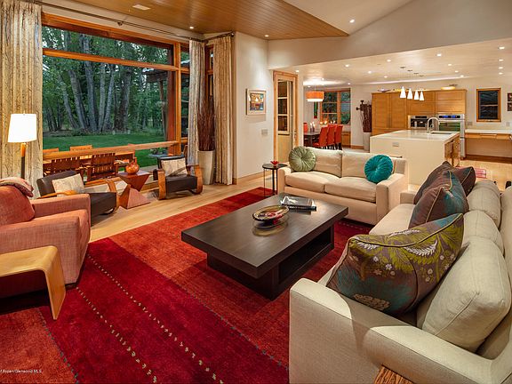 Idyllic setting on the Aspen Golf Course with captivating views of Pyramid Peak and the neighboring Elk Mountain Range, including Buttermilk and Aspen Highlands. The 6 bedroom home was thoughtfully designed for comfortable family living, with all but two of the spacious bedrooms above grade. Intended for enjoying the natural surroundings year-round, there is ample deck space with a dining terrace, outdoor lounge and hot tub. A creek runs through the well-landscaped backyard with a large flat lawn, framed by mature aspen trees. The modern interiors are open and inviting, with a sun-filled main level, including a chefs kitchen, dining room and living space that flow seamlessly together. Private access to the lower level bedrooms provides a great option for a nanny suite or guest quarters.