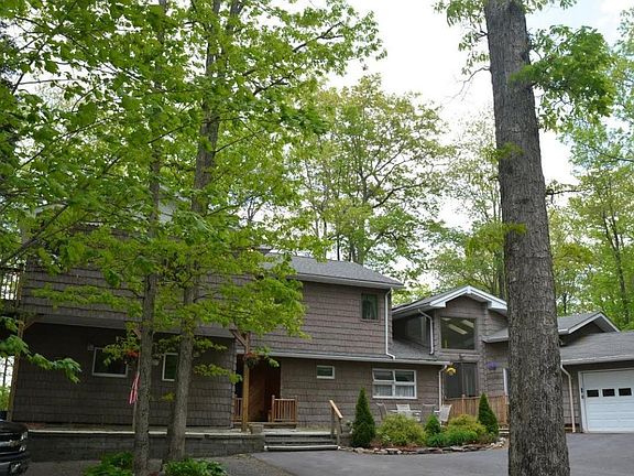 Oversized Mother-Daughter. This Spectacular home is like no other in Hemlock Farms. It has the seclusion and privacy you hope for when you escape to your Lake home. The house sits on a beautiful cul de sac 1+ acres offering over 280' of McConnell Lake frontage. Your dock and Lakeside entertaining area are just a few steps away from the house.Soaring ceilings, built ins and grand stone fireplace will take your breath away. Hardwood floors and a total of 3 bedrooms 5 bathrooms. The Gourmet kitchen overlooks the spacious living room and dining area and for the guests a second kitchen and living area.A private office and family room, adjacent to the 2 car garage offers more sitting areas.VALUE & BEAUTY & QUALITY! A Winning Combination