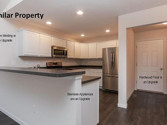 New Abode Aspen floor plan in side-by-side duplex building. Open floor plan, with vaulted ceilings. Kitchen/dining combo also includes breakfast bar. Master suite includes walk-in closet, plus a bathroom with walk-in shower, dual sinks, and linen closet. 2nd bedroom, another full bath, and laundry complete the main floor. Lower level is stubbed for a full bath and can be finished to include the bathroom, another bedroom, and family room, leaving plenty of unfinished storage space. Base price allows buyers to choose from a variety of quality finish options including: carpet, vinyl and tile flooring, cabinets in several door styles with multiple stain choices, lighting and door hardware available in 2 different finishes and multiple counter top choices. Appliances are available in black or white. This building has a passive radon system installed. $120 association start-up fee.