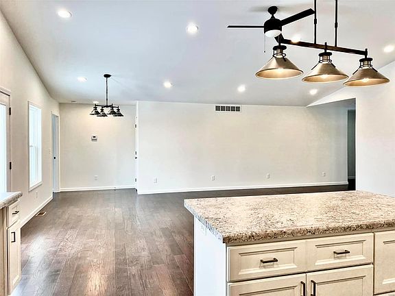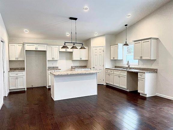 COMP ONLY. New construction with open floor plan. Large kitchen offers plenty of cabinets and counter space, a walk-in pantry and center island. Hardwood floors extend throughout the house, with ceramic tile in the main level laundry room and bathrooms. Primary suite has a large walk-in closet and private bath with stand-up shower. Split bedroom floorplan allows for two additional bedrooms and a full bath separated from the primary suite. A full walk-out basement offers a rough-in bath, egress door and windows, making it easy to finish for more living area. A concrete safe room is present. Tankless water heater and water softener included. Large deck and patio area.