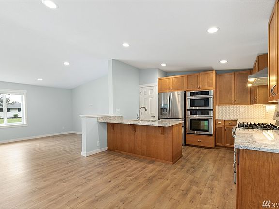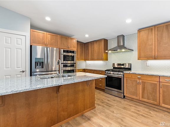 Enjoy this Stunning remodel! Filled with custom details! Open and bright, features granite throughout, Ceramic tile, laminate flooring. Kitchen designed with your inner Chefs in mind! Two ovens, huge granite countertop with seating to accommodate extra guests, stainless steel appliances w/2 ovens Beautiful parklike backyard, features old growth cedars, deck with built in seating. Enjoy your patio and firepit for evening get togethers. Large double lot, .33ac located in town close to everything!
