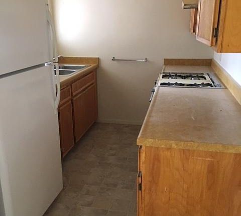 New paint, new flooring in this one bedroom with private balcony, upstairs. Plenty of parking. Coin operated laundry. Lots of light. Owner pays water and trash, tenant pays gas and electric