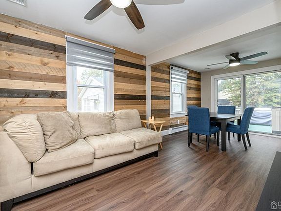 Charming 2 Bed 1.5 Bath Cape with oversized 2 Car Garage and Partial Finished Basement could be the one for you! Situated on a large plush lot on a quiet street, close to parks, shopping, dining, Main St amenities, public transit and more! Plush landscaping and rocking chair front porch welcome you into a light and bright interior bursting with possibilities! Renovated Living rm with newer flooring and accent wall flows seamlessly into the Dining rm. Sliders here open to your private Deck for easy outdoor grilling and dining. Sizable Eat-in-Kitchen offers ample space to customize it to your liking. Full Bath + versatile Bonus rm (great for a Home Office or 3rd Bedroom), rounds out the main level of this gem. Upstairs, find 2 freshly painted Bedrooms with newer flooring and a convenient 1/2 Bath. Partial Finished Basement with recessed lighting boasts a Rec Rm, addtl Bonus Rm, storage space and Laundry facilities. Outdoor area features a quaint Deck, Patio, plush yard space and oversized detached 2 Car Garage with ample driveway parking. With your personal touch, this could be your Home Sweet Home!
