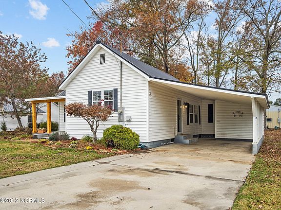 Come see this charming 2-bedroom, 2-bathroom, + bonus room cottage! Located in the heart of the quaint town of Beulaville, NC, this home is within walking distance to all amenities including parks, the town's library, restaurants, grocery stores, shopping, and much more. Enjoy your favorite warm drink while relaxing on the inviting covered front porch. Enter the front door and notice the spacious bonus room/office that could be converted to a third bedroom if desired. The living area is open to the kitchen and can also be accessed through the entry door from the carport area. The primary owner's suite includes a newly renovated bathroom that has a beautifully upgraded vanity and walk-in shower. Down the hall you will find a laundry room appointed with utility sink, the newly renovated guest bathroom, and the guest room. There is also a large attic area, perfect for storage. Outside, you will find the carport containing a large storage room while the back patio is perfect for your barbeque get-togethers. Schedule your appointment today and enjoy your new cottage!