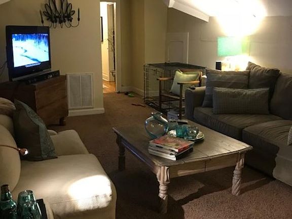 The view from your front door is the Raleigh skyline! If you want to live in a space that doesn't feel like an apartment, but isn't priced like a house, this is your spot. This space has incredible character. It is the top floor of a house, over two other apartments with shared storage in the basement and a shared backyard (fenced) and deck. Enjoy the firepit and some wine or a beer with your neighbors who are all great people. Or, walk to dinner on Glenwood South or a festival/concert downtown. Parking for 1 car off street, and plenty of on-street parking available very close by. Well-behaved, non aggressive breed pets are welcome with a refundable pet deposit. One month security deposit if no pets. Washer/dryer included. Renter pays for all utilities