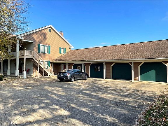 Unique Opportunity! Located on US Rt 30 just east of downtown Minerva. Property features a 4,312 Sq Ft home that has been used for corporate offices with three sections, easily subdivided. Main home office with four bedrooms and 2.5 baths. Plus a separate primary suite with kitchenette, full bath, and a walk-out balcony, and a private entrance (easily rentable for VRBO or separate apartment/office). The main level of the home has an additional 24' x 26' rec room/office with wood floors, beamed ceiling, fireplace/grill, and sliding doors to walkout patio entrance, half bath. Plus an additional 24' x 26' workroom with commercial flooring, half bath, and separate entrance. Plus two car attached garage. All this totaling 5 bedrooms, two full baths, three half baths, a modern kitchen with Corian counters and appliances, the second floor having a second kitchen with laundry area. 3 gas furnaces, 2 central air units, two water heaters, updated electric service, two fireplaces, finished baseme
