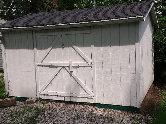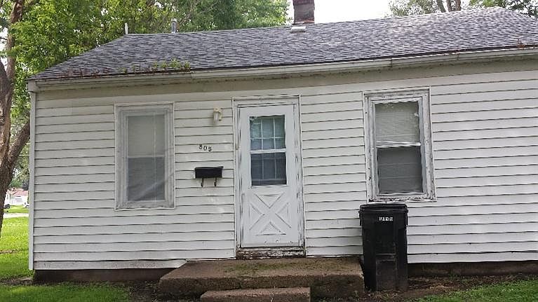 Cheaper than rent. This is a very nice 2 bedroom home in good shape with plenty of room. LR plus additional FR space off kitchen. Handicap ramp is already installed. Rear entrance off alley, large garden shed. Kitchen range and kitchen dining set included in sale. Laundry hookups are on main floor, just off the kitchen. No basement. Call a Realtor today for a showing. Only $39,900.