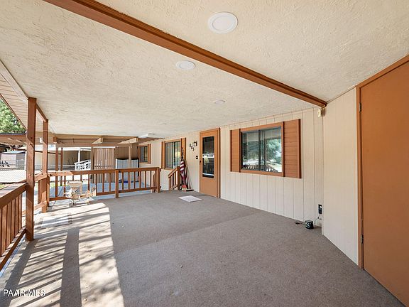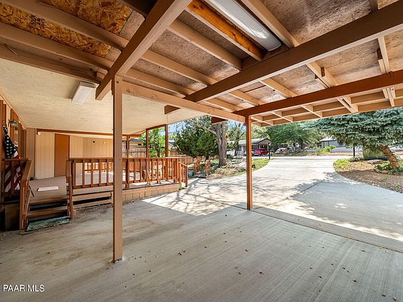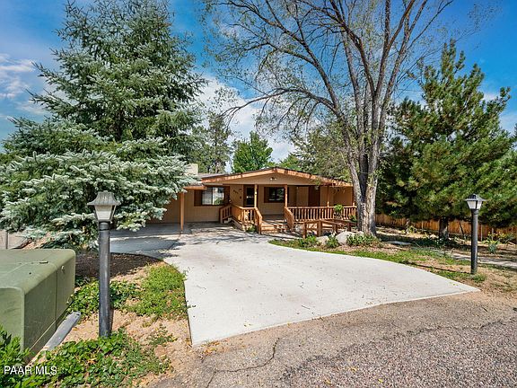 Nestled in a peaceful cul-de-sac with picturesque boulder views, this charming 3-bed, 2-bath manufactured home in Prescott offers 1,306 sq. ft. of comfortable living space. The home features a large covered deck, perfect for relaxing or entertaining, and plenty of covered parking along with additional storage sheds. Inside, you'll find a cozy living area with ample natural light, and a spacious kitchen with updated stainless steel appliances. Located close to shopping and just minutes from downtown Prescott, this property offers convenience and tranquility. Don't miss your chance to view this lovely home! --Paint and a furnace that are only a year old and a new roof only 1.5 yrs old