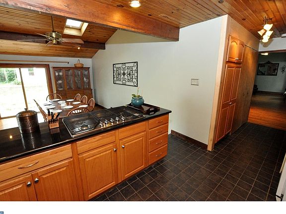 Stretch out in this expanded and updated split-level on a quiet street located in the Delcrest Community. Welcome home through the enclosed front porch area leading to massive living room with polished hardwood flooring with upgraded Bay window. Extended kitchen boasts custom tile flooring, granite counter tops and a neutral tile backslash. Built-in wall pantry with wall oven and separate gas stove top with automatic back hood. Wood accented ceilings leading to family room addition with soaring cathedral ceilings, skylight & custom stone wood burning fireplace. Rear slider leads to private rear yard with a relaxing in-ground pool and separate fire pit for those chilly nights. Lower level features a separate den with maintenance free laminate flooring , a 5th bedroom and a private office with new electric baseboard heating and plush carpeting. The upstairs 2nd, 3rd and 4th bedrooms also feature original hardwood flooring with neutral tones. Master suite addition is complete with plush carpeting, cathedral ceilings with a skylight which brings an abundance of natural lighting. A large walk-in closet and a master bath with high density vinyl flooring and jacuzzi tub. Other amenities and features included a newer tankless water heater, rear brick pavers, shed/ pool changing room.